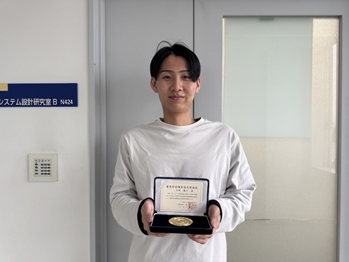 電気電子工学専攻修士課程2年 片岡優斗さん(佐々木秀徳研究室)が、令和7年電気学会全国大会で「優秀論文発表賞」を受賞されました。