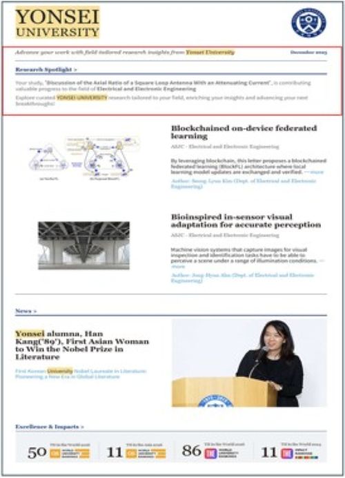 韓国・延世大学(アジア大学ランキング11位、ノーベル文学賞受賞者を輩出)は、 中野久松名誉教授らの論文を研究注目論文として選定し、公表しました。